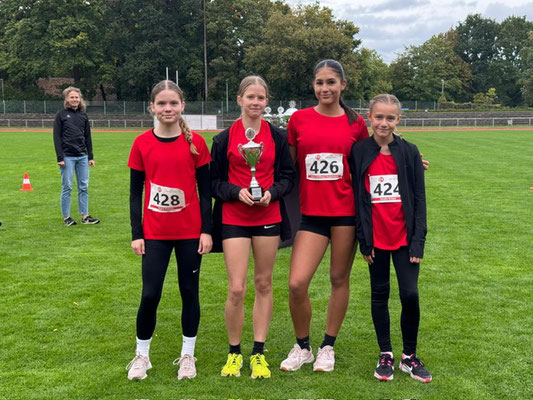 Unsere Athletinnen haben überzeugt, so gewannen Amelie Gröger, Anna-Lena Wiebe, Lena Hoppmann und Marie Proksch den Pokal in der weiblichen Jugend U14!
