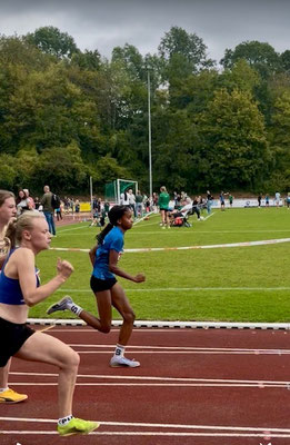 In der Altersklasse W14 konnte Samia Nzangue Yemili über 100m in persönlicher Bestzeit (PB) von 13,58 sec Platz 3 erreichen vor Greta Thomas die in PB von 14,21 sec Vierte wurde. Über 300m kam Greta in PB von 48,61 sec als Dritte ins Ziel. Samia sprang zudem 4,31 m weit.